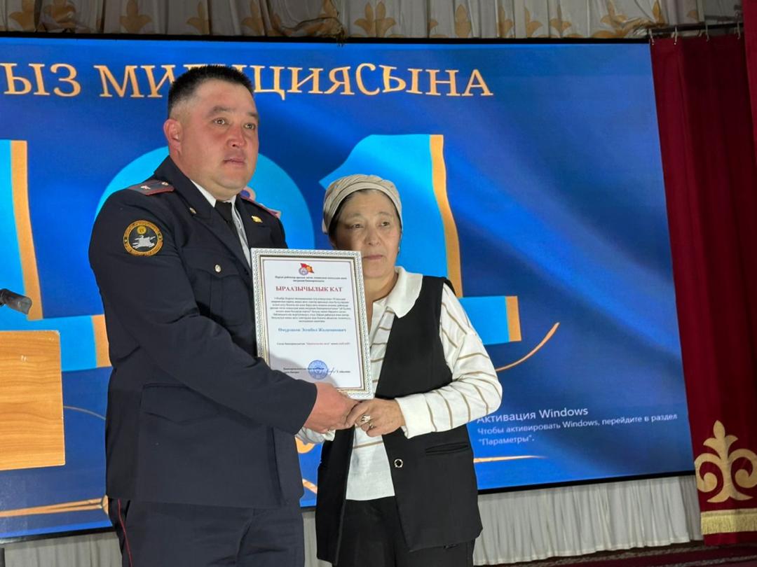 Район акими өз куттуктоосунда коомдук тартипти камсыз кылуудагы ички иштер органдарынын талыкпаган эмгегине токтолуп, жарандардын коопсуздугун камсыз кылуудагы кызматтары үчүн ыраазычылыгын билдирди.