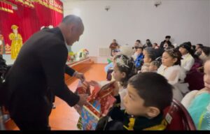 Иш-чара Нарын райондук мамлекеттик администрациясынын резервдик фондунан 61 миң сом каражат бөлүнгөн жана демөөрчүлөр “Авелум Партнер” ЖЧК жана КРнын Жогорку Кеңешинин депутаты Ж.Таалайбек кызы колдоо көрсөтүп, жалпы 250 балага жаңы жылдык белектер тапшырылды.