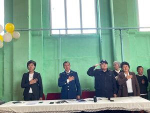 Жолугушууга Нарын районунун прокурорунун орун басары Мухаммед Паттаевич Жалилов катышып, окуучуларды тарбиялуу, билимдүү жана мекенчил болууга чакырып, ак жол каалады.